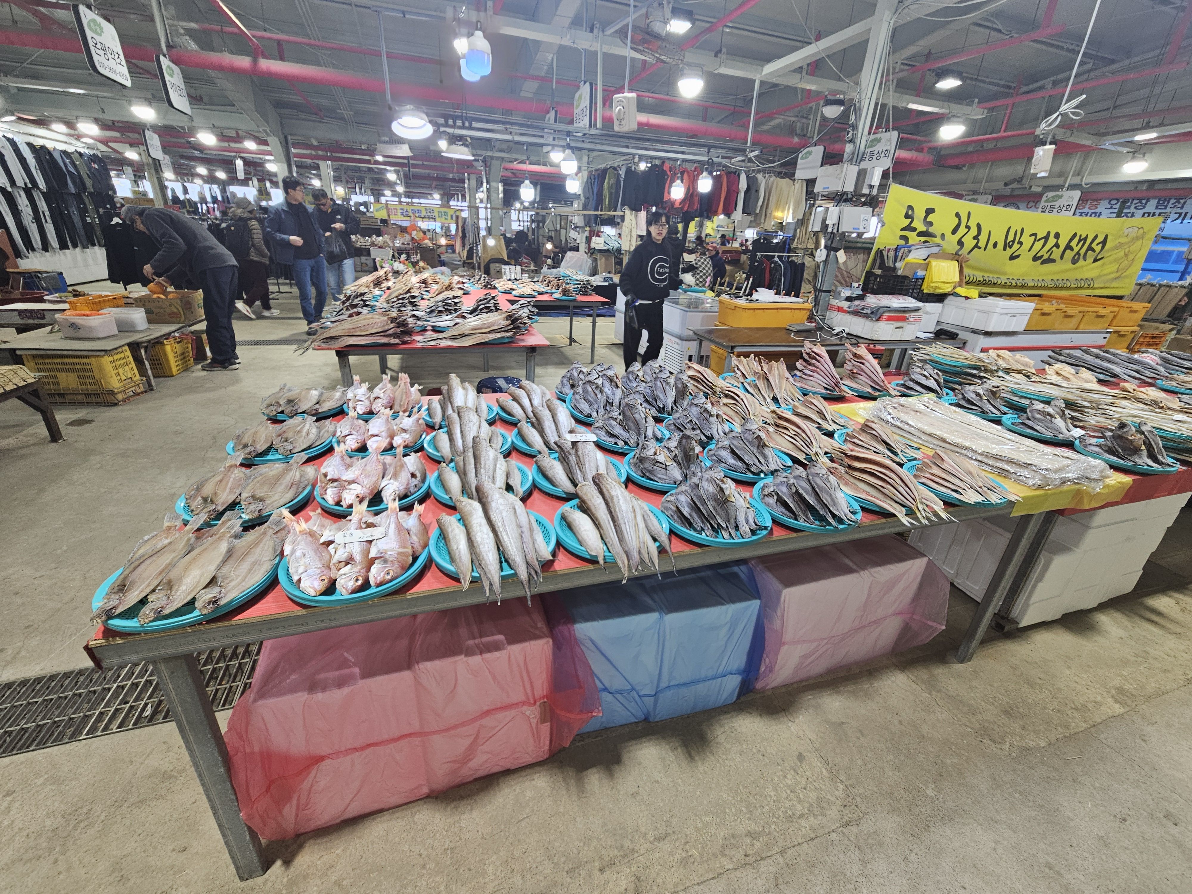 농산물, 수산물, 식당으로 3개의 건물로 나뉘어 있는 시장입니다.