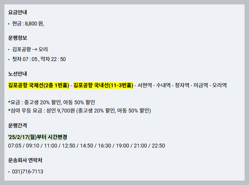 성남에서 김포공항으로, 오리역에서 김포공항으로 가는 리무진 시간표와 예약방법을 알려드립니다