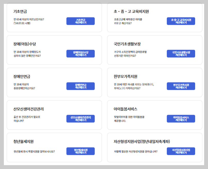 복지로 모의계산으로 신청가능한 정부지원금을 계산해 보세요.