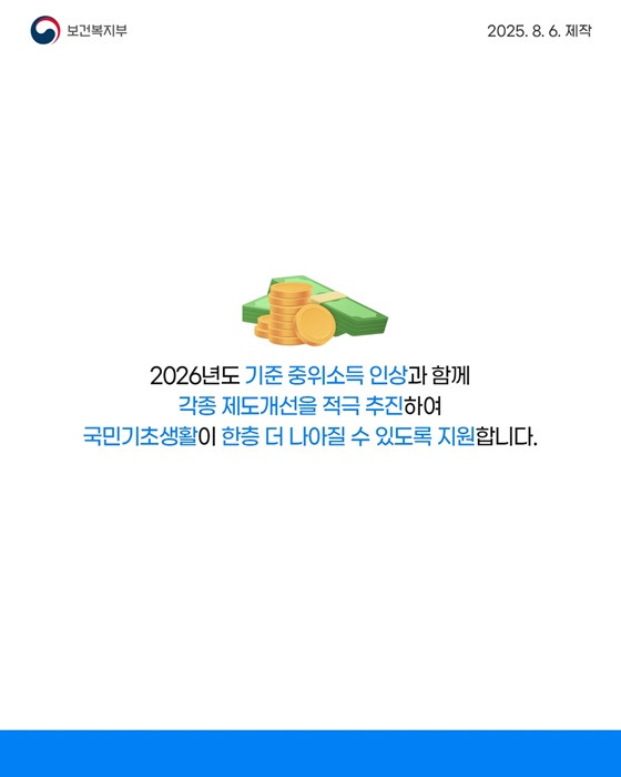 이번 인상으로 더 많은 저소득층이 지원 대상에 포함되며, 특히 청년·노령층 지원 확대가 주목됩니다.