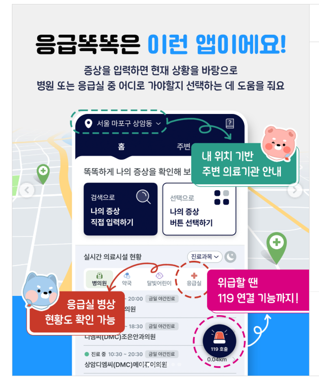 병원 안내 응급 똑똑 앱 달빛어린이병원, 응급실, 약국 등 실시간 운영 정보 확인