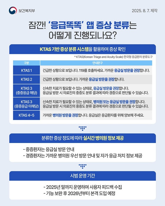 | 응급 분류 | KTAS 기반 | 증상 입력 시 중증도 판별 및 대응 방법 안내 |