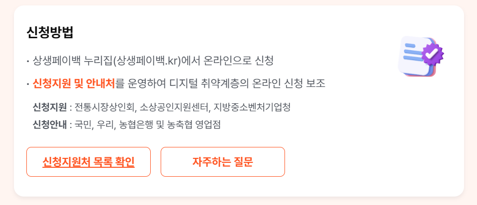 방문하시기 전에 해당 기관에 전화해서 상생페이백 신청 지원(또는 안내)이 가능한지, 운영 시간은 어떻게 되는지, 현재도 신청을 받는지 등을 미리 확인하세요