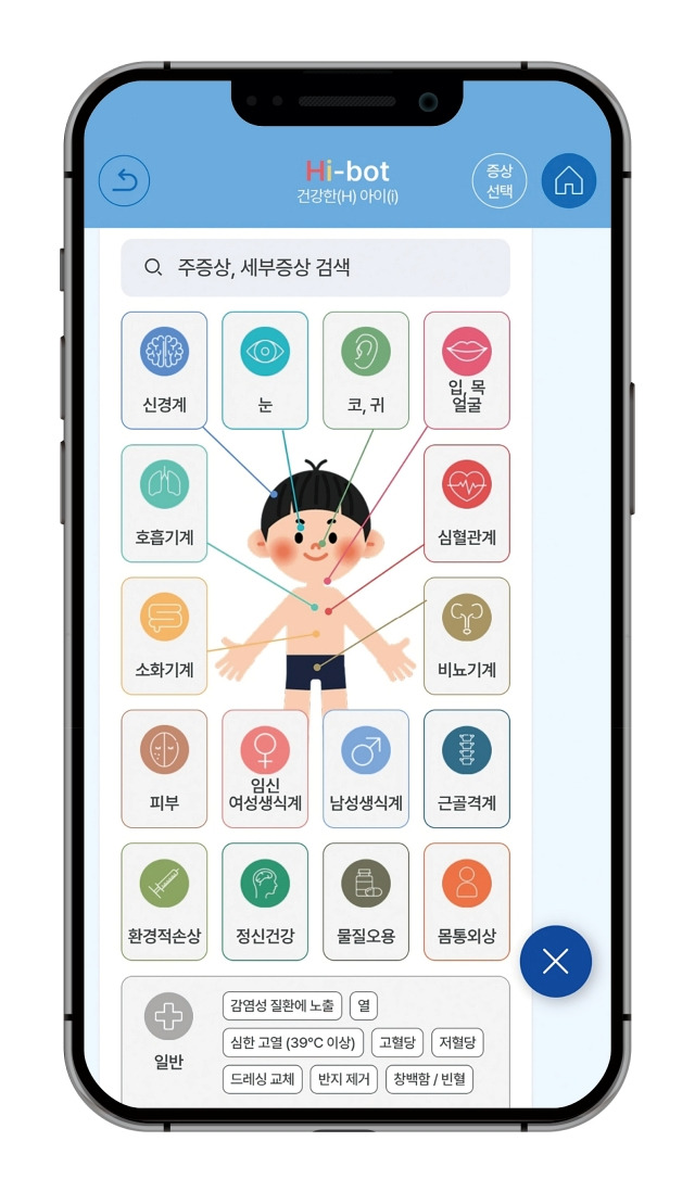 ④ 아이 증상을 그림·문자로 입력 → KTAS(한국형 응급환자 분류도구)에 따라 응급도 분류